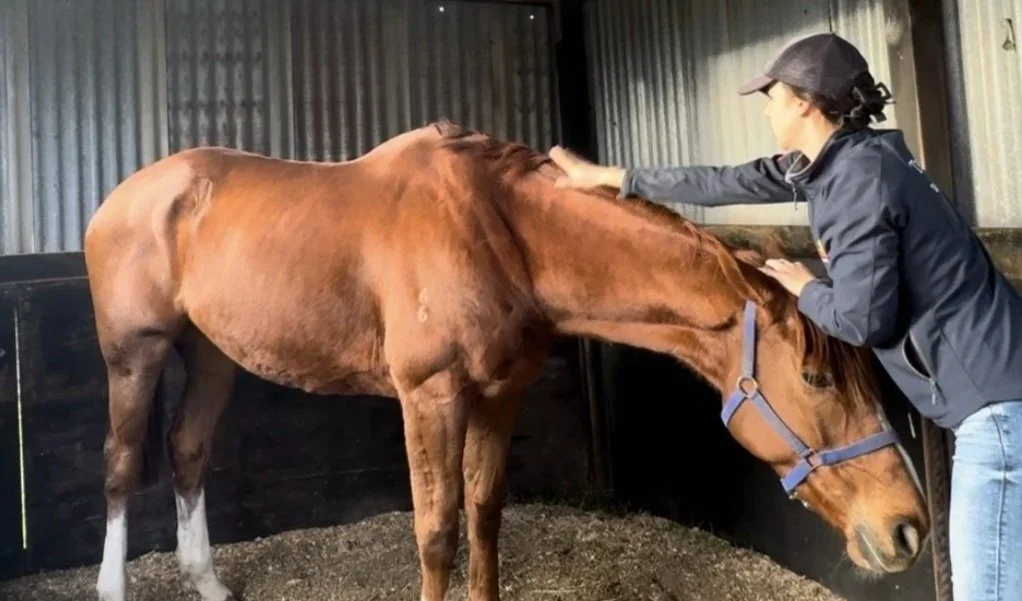 In 2019 I acquired an off-the-track thoroughbred named Granite Belt. He retired from racing due to a hamstring tear, and his rehabilitation started a turning point in my career. Working closely alongside veterinarians and bodyworkers, I saw first-hand the impact that precise manual therapy could have on recovery, strength and long-term soundness. Granite went on to take me confidently around my first 110cm tracks, and at the end of 2023 we were training 120cm tracks at home, but he required consistent maintenance to perform his best. Managing his workload and bodywork requirements sparked my fascination with the mechanics of the equine body and the role bodywork plays in optimising performance. After a few years of studying the work of the professionals that treated him, I began to treat him myself firstly through self-taught practice, and in 2024 I qualified as an Equine Tissue Mobilisation Therapist.
